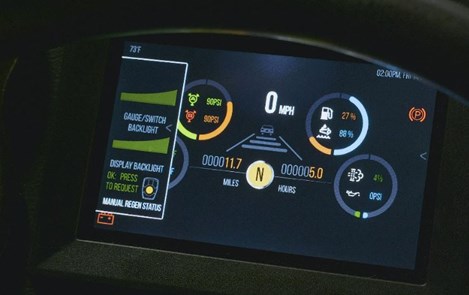 Take exhaust aftertreatment, for example. When soot levels in the filter reach 100%, the gauge turns yellow and an audible alert sounds. An early warning that attention is needed. If soot levels continue climbing to 170%, the gauge turns red and the alert intensifies, making it clear the truck should be inspected by a technician.